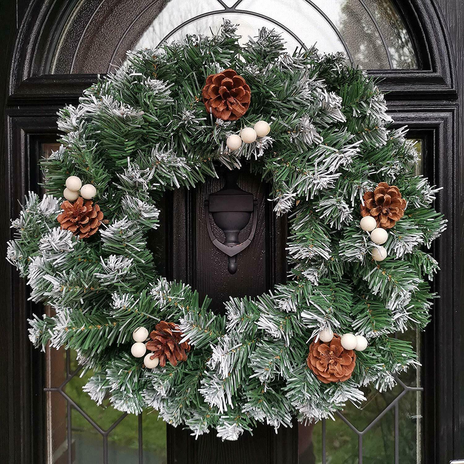 Premier Christmas Door Snow Berries Tipped Wreath With Cones 50cm Snowy